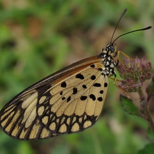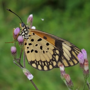 Wie von Hübner 1819 ungültig festgestellt, bezieht sich Acraea auch auf Schmetterlinge, die derzeit in "Actinote" platziert sind Acraea ist eine Schmetterlingsgattung aus der Familie der Nymphalidae (Heliconiinae). Es scheint sehr paraphyletisch zu sein und wird seit langem als "Mülleimer-Taxon" verwendet, um etwa 220 Arten anatomisch konservativer Acraeini zu vereinen. Einige phylogenetische Studien zeigen, dass die Gattung Acraea monophyletisch ist, wenn Bematisten und neotropische Aktinote eingeschlossen sind (siehe Pierre & Bernaud, 2009). Die meisten hier versammelten Arten sind auf das afrotropische Reich beschränkt, aber einige kommen in Indien, Südostasien und Australien vor.