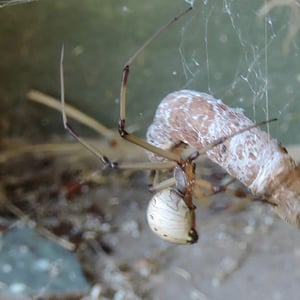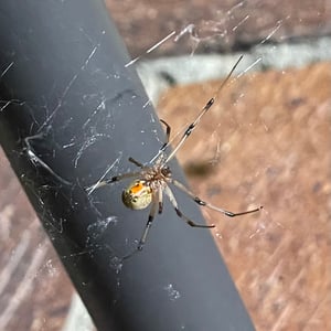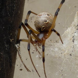 Die Weibchen leben 3 Jahre, die Männchen leben nur 8 Monate oder ein Jahr. Die Weibchen fressen hauptsächlich Insekten, es wurde aber auch beobachtet, dass auch kleine Kröten verspeist wurden, welche sich in ihrem Netz verfangen hatten. Die Art findet man in besiedelten Gebieten in der Umgebung von Häusern, in Gärten, in Autos und Wohnmobilen. Sie besiedelt auch Kunststoff-Gartenmöbel, Blumentöpfe oder Blätter von Paradiesvogelblumen. In der Regel findet man sie überall dort, wo sie einen geschützten Platz findet.