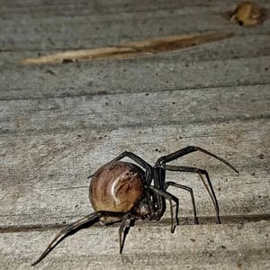 Die Männchen sind harmlos, nur die Cheliceren der Weibchen durchdringen die menschliche Haut. Ihr Biss wird als weniger gefährlich eingestuft denn jener der Südlichen Schwarzen Witwe (Latrodectus mactans) oder der Europäischen Schwarzen Witwe (Latrodectus tredecimguttatus), kann unbehandelt aber auch starke, langanhaltende Muskelschmerzen verursachen. In der Regel nehmen die Spinnen bei Gefahr eine Abwehrhaltung ein, bei der sie die Gliedmaßen eng anlegen. Nur wenn sie weiterhin gereizt werden, setzen sie sich zur Wehr.