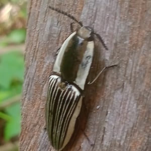 Chalcolepidius limbatus ist eine Insektenart aus der Familie der Blattkäfer (Chrysomelidae). Sie ist allgemein als gebänderter Blattkäfer bekannt, aufgrund der deutlichen schwarzen Bänder auf ihren Flügeldecken. Dieses Insekt kommt typischerweise in bewaldeten Gebieten vor, wo es sich von den Blättern verschiedener Pflanzen ernährt. Ihre metallisch grüne Färbung und die komplexen Muster machen sie zu einer optisch beeindruckenden Art.