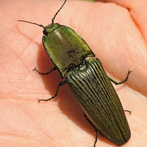 Chalcolepidius oxydatus ist ein kleines metallisch grünes Insekt aus der Familie der Blattkäfer (Chrysomelidae). Es kommt häufig in tropischen Regionen vor, insbesondere in Regenwäldern. Dieses Insekt hat eine flache Körperform und ernährt sich von den Blättern verschiedener Pflanzen. Seine metallische Färbung dient als eine Art Tarnung und passt sich der umgebenden Vegetation an.