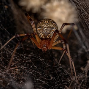 In den Außenbereichen des Netzes eines Weibchens können zur richtigen Jahreszeit geschlechtsreife Männchen beobachtet werden, die während der Paarungs- und Balzzeit nicht feindlich empfangen werden, sondern längere Zeit freundlich im Netz toleriert werden und denen manchmal sogar dort auch Beute zugestanden wird. Gelegentlich tötet und verspeist ein Weibchen das Männchen, jedoch ist das entgegen verbreiteter Annahme eher die Ausnahme. Die deutsche Bezeichnung „Witwe“ ist vermutlich unbegründet. Die geschlüpften Jungtiere verbringen die ersten Tage im Netz der Mutter und werden von ihr dort mit Nahrungsbrei gefüttert (Regurgitationsfütterung), wie bei der europäischen Theridion sisyphium u. a. Kugelspinnen beobachtet wurde. Danach schließt sich eine Phase an, in der Jungtiere noch einige Wochen mit fester Nahrung versorgt werden. Dazu zerrt die Mutter gefangene Insekten in ihren Schlupfwinkel zu den Jungtieren.