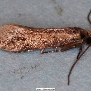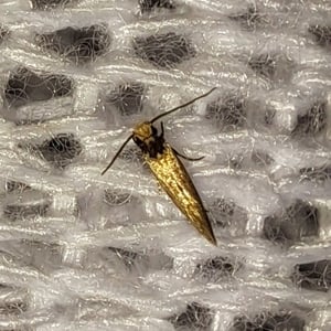 Homostinea curviliniella ist ein Schmetterling (Nachtfalter) aus der Familie der Ritterfalter (Tineidae). Es kommt in Kuba und Nordamerika vor, wo es aus dem größten Teil der östlichen Hälfte der Vereinigten Staaten und aus Arizona nachgewiesen wurde. Die Spannweite beträgt etwa 8 mm. Die Vorderflügel sind schmutzig gelblich, mit fuscous bestäubt und mit dem basalen Teil der extreme Costa dunkel fuscous. Der rauchige Staub verdichtet sich entlang der Küste, mit Ausnahme des letzten Fünftels. Die äußerste Basis und insbesondere der Analwinkel ist schwärzlich und es gibt einen schwärzlichen Fleck in der Rippenhälfte des Flügels vor der Mitte. Es gibt auch eine gekrümmte schwarze Linie, mehr oder weniger unterbrochen, in der Mitte des apikalen Drittels, die zum Rückenrand hin und etwas näher gekrümmt ist. Es gibt einige verstreute Schuppen, die am Rückenrand stärker ausgeprägt sind, und im apikalen Teil des Flügels sind einige verstreute weißliche Schuppen. Die Hinterflügel sind grau-rauchig mit einem schwachen Messingglanz zur Spitze hin.