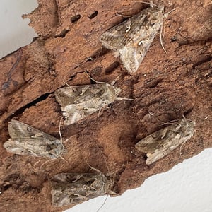 Es gibt zahlreiche Arten, die als Schädlinge in Landwirtschaft und Forst auftreten können, so beispielsweise die Kieferneule (Panolis flammea).