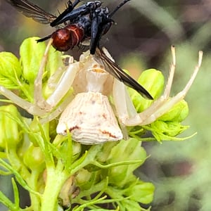 Wie bei den meisten Thomisidae-Arten weisen Thomisus einen sexuellen Größendimorphismus auf: Weibchen sind 4 bis 10 mm lang, Männchen nur 2 bis 7 mm. Viele Arten sind hell gefärbt und entsprechen normalerweise der Farbe der Blüte, in der sie im Hinterhalt warten. Nicht alle Arten sind blumenbewohnend, aber unter denen, die es sind, können zumindest einige Arten ihre Farbe über einen Zeitraum von einigen Tagen ändern, um der Blütenfarbe zu entsprechen. Studien deuten darauf hin, dass Bienen dazu neigen, eine Blume zu meiden, die ein spinnengroßes Objekt mit einer nicht passenden Farbe enthält; Ob dies speziell ein Mechanismus zur Vermeidung von Krabbenspinnen ist oder einfach, dass sie sich nicht von Blumen angezogen fühlen, deren Nektarführer verdeckt sind, ist jedoch eine schwierigere Frage. Die Farbveränderungen, die solche Arten erreichen können, liegen typischerweise in Bereichen von Weiß, Rosa und Gelb. Zum Beispiel ähnelt die Tarnmethode bei Thomisus spectabilis der Misumena vatia, obwohl T. spectabilis für ihre Beute sichtbar ist, aber nicht für ihre Raubtiere. Diese Art von Krabbenspinnen ist UV-reflektierend, während die Blume UV-absorbierend ist, wodurch ein Kontrast zwischen Spinne und Blume durch die Augen des Bestäubers entsteht. Der erzeugte Kontrast zieht Bestäuber wie Honigbienen stark an. Diese evolutionäre Tarnungsmethode erhöhte die Wahrscheinlichkeit, dass die Krabbenspinnen auf Beute stießen, was sich wiederum auf die Fitness der Krabbenspinnen auswirkt. Aufgrund der erhöhten Begegnungsrate der Beute können die Spinnen ihre Energie auf die Fortpflanzung konzentrieren, was zu einer erhöhten Fitness der Spinnen führt. Die evolutionäre Tarnungsmethode erhöht die Überlebensfähigkeit und Fitness von Krabbenspinnen erheblich.