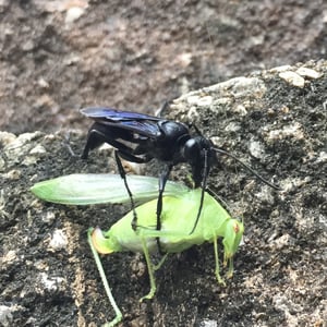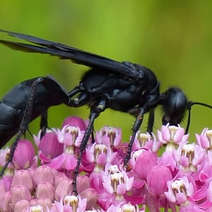 Sphex pensylvanicus, die große schwarze Wespe, ist eine Art von Grabwespe. Es lebt in den meisten Teilen Nordamerikas und wächst auf eine Größe von 20-35 mm (0,8–1,4 Zoll). Die Larven ernähren sich von lebenden Insekten, die die Weibchen lähmen und zum unterirdischen Nest tragen.
