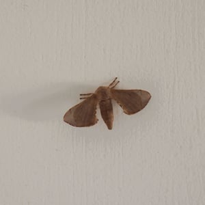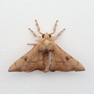 Die Flügelspannweite beträgt 25-27 mm. Es gibt zwei Farbvarianten der Art; Albicollis ist die gräuliche Form und Varians ist die rötliche Form. Kopf, Brustkorb und Bauch der Männchen sind blass oder dunkelrotbraun. Vorderflügel sind blass rotbraun oder grau, mit zwei antemedial gekrümmten Wellenlinien. Am äußeren Rand unterhalb der Spitze befindet sich ein dunkler Fleck. Der Rippenrand ist blasser mit Zilien, die dunkelrotbraun sind. Die Hinterflügel sind blass oder dunkelrotbraun oder mit grauem, rotbraunem Außenbereich. Die postmediale Linie ist undeutlich. Ventrale Oberfläche ist blasser mit einigen dunkelroten Streifen. Larven sind länglich und braun mit dunklen Punkten und einer seitlichen Reihe schwarzer Flecken. Es gibt eine leichte Protuberanz an jedem der thorakalen und 5., 8. Somiten. Ein langes schlankes Horn ist auf Anal Somite zu sehen. Die Raupen leben an Streblus- und Ficus-Arten. Ein Seidenkokon ist oval und blass. Die Verpuppung erfolgt in einem bootförmigen Kokon, der eng mit weißer oder gelber, eher papierartiger Seide verwoben ist. Die Puppe ist hellgelb.