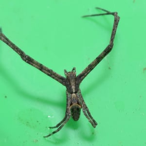 Die Deinopidae, auch Netzwurfspinnen genannt, sind eine Familie von Cribellaten Spinnen, die erstmals 1850 von Carl Ludwig Koch beschrieben wurden. Es besteht aus stockartigen länglichen Spinnen, die Beute fangen, indem sie ein Netz über ihre Vorderbeine strecken, bevor sie sich vorwärts treiben. Diese ungewöhnlichen Netze dehnen sich zwei- oder dreimal so groß aus wie ihre normale Größe und verwickeln jede Beute, die sie berührt. Die hinteren mittleren Augen haben eine ausgezeichnete Nachtsicht, so dass sie Netze bei schlechten Lichtverhältnissen genau werfen können. Diese Augen sind größer als die anderen und manchmal scheinen diese Spinnen nur zwei Augen zu haben. Ogergesichtsspinnen (Deinopis) sind die bekannteste Gattung in dieser Familie. Der Name bezieht sich auf die wahrgenommene körperliche Ähnlichkeit mit dem gleichnamigen mythologischen Wesen. Zu dieser Familie gehören auch die buckligen Spinnen (Menneus). Sie sind in den Tropen weltweit von Australien bis Afrika und Amerika verbreitet. In Florida hängt Deinopis tagsüber oft kopfüber an einer Seidenschnur unter Palmwedeln. Nachts taucht es auf, um seine ungewöhnliche Beutefangmethode an wirbelloser Beute zu üben. Seine Augen sind in der Lage, verfügbares Licht effizienter zu sammeln als die Augen von Katzen und Eulen, und dies trotz fehlender reflektierender Schicht (Tapetum lucidum); Stattdessen wird jede Nacht eine große Fläche lichtempfindlicher Membran in den Augen hergestellt, und da Spinnentier-Augen keine Iris haben, wird sie im Morgengrauen schnell wieder zerstört.
