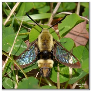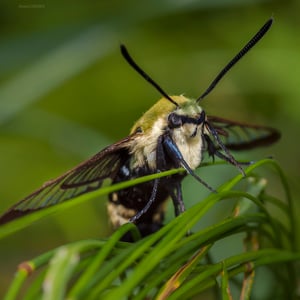 Es ist ungefähr 1,25 - 2 Zoll. Der Bauch des Falters hat gelbe und schwarze Segmente, ähnlich denen der Hummel, für die er aufgrund seiner Farb- und Flugmusterähnlichkeiten verwechselt werden könnte. Den Flügeln der Motte fehlt die große Menge an Schuppen, die bei den meisten anderen Schmetterlingen zu finden sind, insbesondere in den zentralen Regionen, wodurch sie klar erscheinen. Es verliert die Schuppen an seinen Flügeln früh nach dem Puppenstadium durch seine hochaktiven Flugtendenzen.