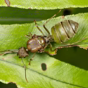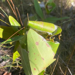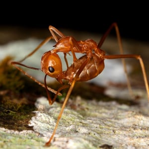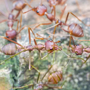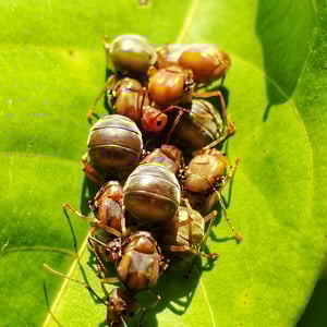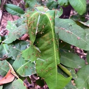 Oecophylla smaragdina (nombres comunes hormiga tejedora, hormiga verde) es una especie de hormiga arbórea de Asia tropical y Australia. Forma colonias con varios nidos en los árboles. Cada nido está hecho de hojas cosidas entre sí con seda producida por las larvas.