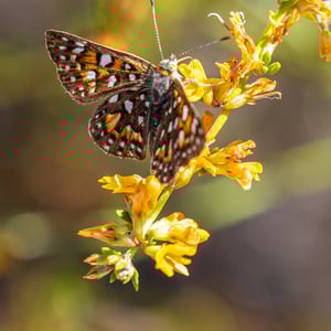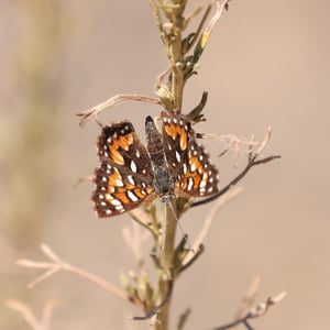 Apodemia virgulti es una especie de mariposa comúnmente conocida como el Metalmark Mormón. Se encuentra en el oeste de América del Norte, especialmente en California y Nevada. Esta pequeña mariposa tiene una envergadura de alrededor de 2.5 centímetros y muestra un llamativo patrón de azul metálico y naranja en sus alas. Las larvas de Apodemia virgulti se alimentan de varias especies de plantas de trigo sarraceno.