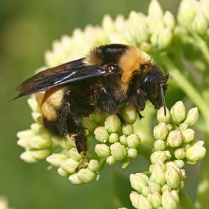 Bombus auricomus es una especie de abejorro de la familia Apidae. Es nativo del este de Norteamérica, incluyendo Ontario y Saskatchewan en Canadá y gran parte del este de los Estados Unidos, tan al oeste como las Grandes Llanuras.[1][2] De tamaño grande, reina de 20 a 25 mm, macho de 17 a 20 mm, obrera de 18 a 20 mm. Es considerado un mímico mulleriano de B. pensylvanicus.[3] Esta especie crea nidos sobre el suelo en pastizales y otros tipos de hábitats abiertos. Se alimenta de muchos tipos de plantas, incluyendo cardos, tréboles de pradera, delphiniums, cardones, equináceas, bergamota y vicias. Anteriormente se pensaba que esta especie era coespecífica con el abejorro de Nevada (B. nevadensis), pero ahora se consideran especies separadas.