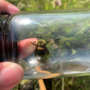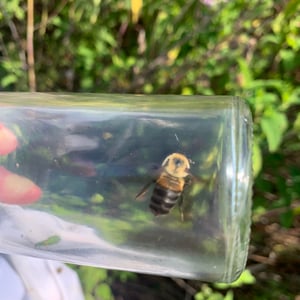 La reina mide de 2,1 a 2,3 centímetros de largo y aproximadamente un centímetro de ancho en el abdomen. Su cabeza y cara son negras con pelos amarillos dispersos. El tórax está cubierto de pelos amarillos. El abdomen es amarillo con bandas negras, con una superficie posterior negra y ventral negra. Las patas son negras. Las obreras son más pequeñas que la reina, a veces de menos de un centímetro de largo. Tienen un patrón de color similar, pero pueden tener una banda de color marrón amarillento alrededor del abdomen. Los machos miden aproximadamente de 1,5 a 1,9 centímetros de largo y aproximadamente 0,7 centímetros de ancho en el abdomen. Tienen ojos muy grandes que abarcan aproximadamente dos tercios del ancho de la cabeza. La cara y el tórax tienen pelos amarillos y el abdomen tiene bandas de color amarillo, marrón amarillento y negro. Los huevos son blancos, robustos y ligeramente curvados. La longitud media es de 2,91 mm con un intervalo de 2,8-3,1 mm y el intervalo de diámetro es de 0,8-1,00 mm.