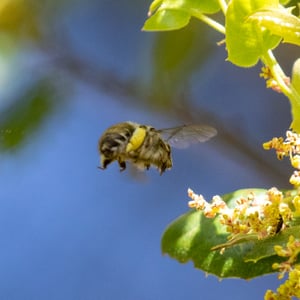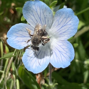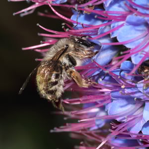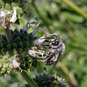 Habropoda depressa es una especie de abeja solitaria comúnmente encontrada en América del Norte. Se caracteriza por su apariencia distintiva, con un cuerpo robusto y un exoesqueleto negro brillante. Estas abejas son polinizadoras importantes, especialmente para las plantas de la familia Asteraceae. Construyen sus nidos en el suelo, creando madrigueras donde depositan sus huevos y almacenan polen para sus larvas.