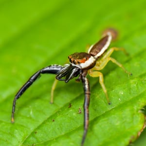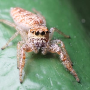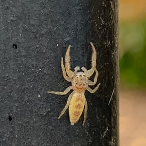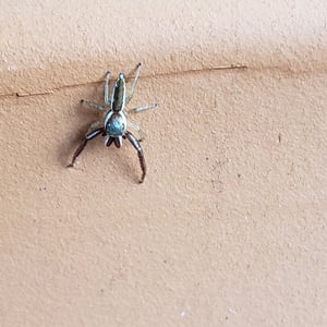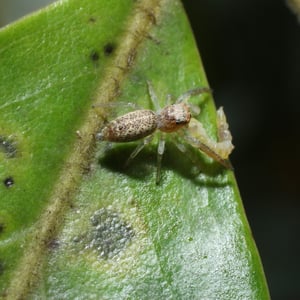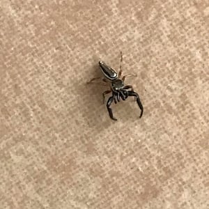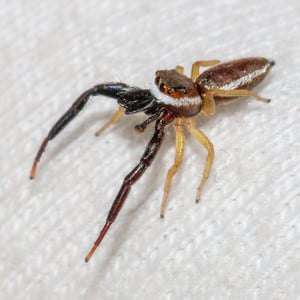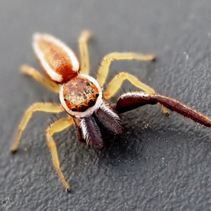 Hentzia palmarum es una especie de araña de la familia Salticidae, comúnmente conocida como araña de palma. Se encuentra en el sur de Estados Unidos, especialmente en Florida y Texas. Esta pequeña araña tiene una coloración distintiva, con un cuerpo marrón oscuro y marcas blancas en su abdomen. Es conocida por su habilidad ágil para saltar y se encuentra frecuentemente en palmeras y otras vegetaciones.