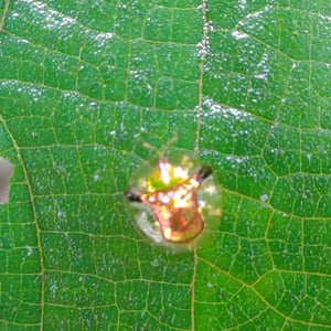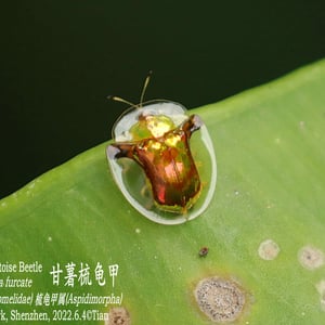 Aspidimorpha furcata es una especie de insecto perteneciente a la familia Aspidimorphidae. Es comúnmente conocido como el chinche escudo bifurcado debido a su distintiva forma bifurcada. Este insecto se caracteriza por su coloración vibrante, con una combinación de marcas verdes, amarillas y negras en su cuerpo. Se encuentra principalmente en regiones tropicales, donde se alimenta de la savia de las plantas utilizando sus piezas bucales perforadoras.