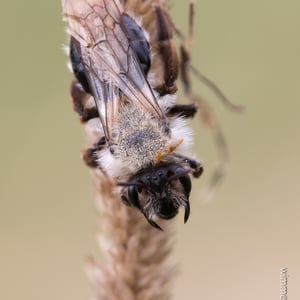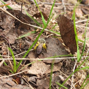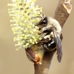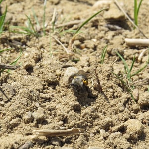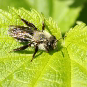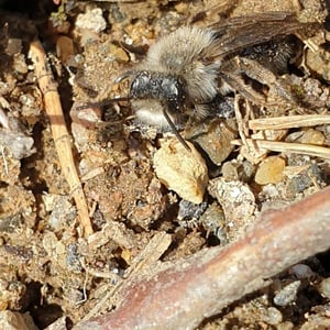 Andrena vaga, comúnmente conocida como abeja minera, es una abeja solitaria que anida en el suelo y se encuentra en Europa. Tiene un tamaño mediano, mide alrededor de 10-12 mm de longitud, con un cuerpo negro oscuro y una densa cobertura de pelo. Estas abejas son importantes polinizadoras, especialmente para las flores de principios de primavera, y crean túneles subterráneos para anidar. Son conocidas por su distintivo zumbido y se encuentran a menudo en jardines, prados y áreas boscosas.