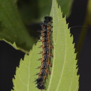 La olmera (Nymphalis polychloros) es una de las 128 especies que componen el género Nymphalis, incluido en la familia Nymphalidae. Es de tamaño mediano, anaranjada con manchas negras, y fue descrita por Carlos Linneo en 1758. Su nombre común se debe a que puede constituir plaga de los olmos (Ulmus spp.). Su epíteto genérico hace referencia a las ninfas —doncellas de los campos, grutas y fuentes— de la mitología griega; y el específico a los numerosos puntos o manchas azul-verdoso que posee en los márgenes de las alas. La ortiguera (Aglais urticae) es una especie parecida con la que se puede confundir.