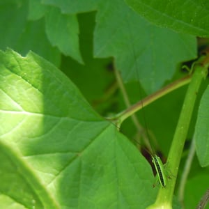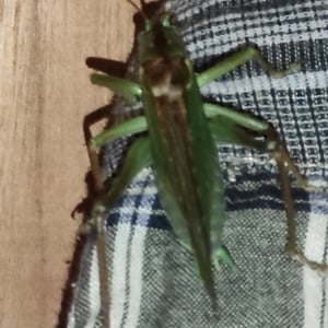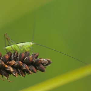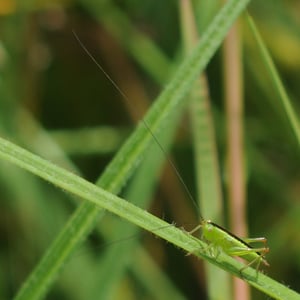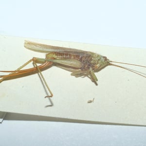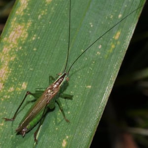 Conocephalus fuscus, comúnmente conocido como el conejo de cabeza larga, es una especie de grillo de arbusto que se encuentra en Europa. Se caracteriza por su cuerpo largo y delgado y su distintiva cabeza en forma de cono. Los machos producen un sonido agudo y zumbante al frotar sus alas juntas, que se utiliza para atraer a las hembras durante la temporada de apareamiento. Este insecto se encuentra típicamente en hábitats herbáceos, como praderas y marismas.