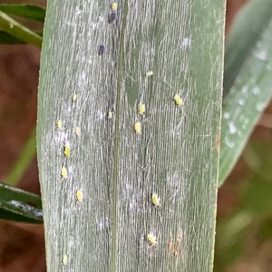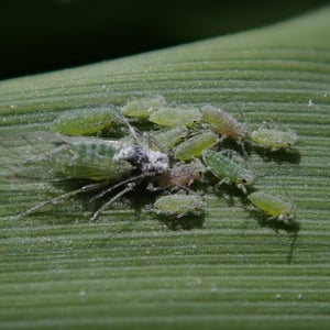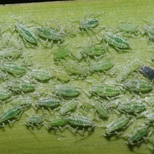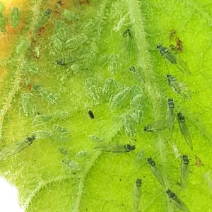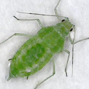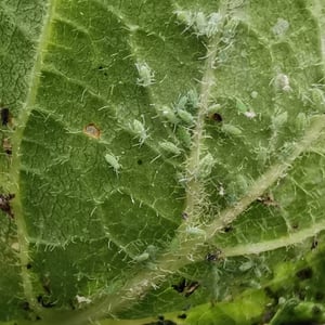 Hyalopterus pruni, comúnmente conocido como pulgón lanoso del ciruelo, es un pequeño insecto perteneciente a la familia Aphididae. Se encuentra típicamente en árboles de ciruelo y otras plantas de frutas de hueso. Estos pulgones tienen un aspecto blanco y polvoriento debido a la secreción cerosa que cubre sus cuerpos, y se alimentan de la savia de la planta huésped, causando daños en las hojas y frutos.