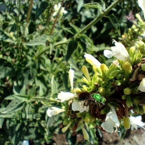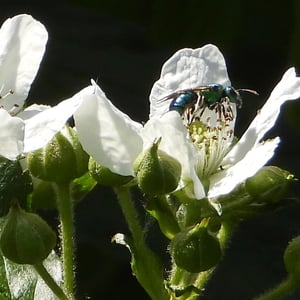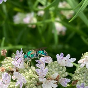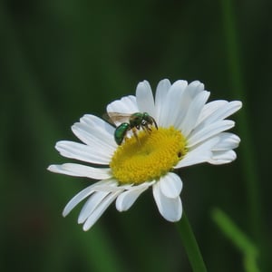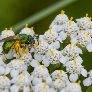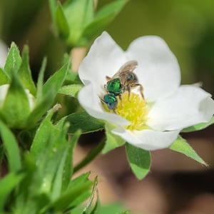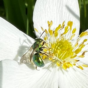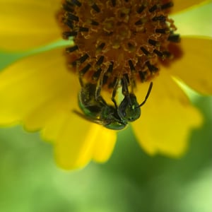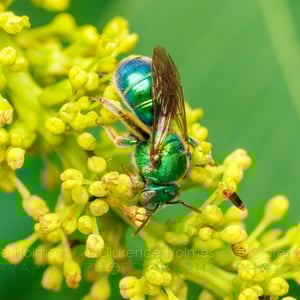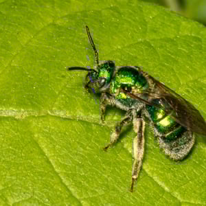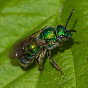 Augochloropsis metallica es una especie de abeja sudorípara metálica que se encuentra en América del Norte y Central. Estos pequeños insectos son conocidos por su llamativa coloración verde o azul iridiscente, que les da un aspecto metálico. Son abejas solitarias que anidan en el suelo y son importantes polinizadores de diversas plantas con flores.