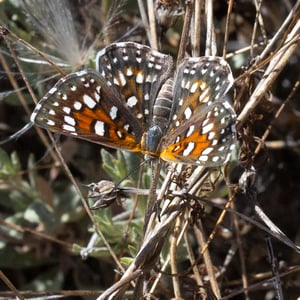 Apodemia mejicanus, comúnmente conocida como la mariposa metalmark mexicana, es una especie de mariposa que se encuentra en América del Norte. Pertenece a la familia Riodinidae y es conocida por su llamativa coloración azul metálico en la parte superior de sus alas. La envergadura de las alas de Apodemia mejicanus varía de 2.5 a 3.5 centímetros, y se puede encontrar en diversos hábitats, incluyendo praderas abiertas y áreas desérticas. Las larvas de esta especie se alimentan de plantas de la familia Asteraceae.