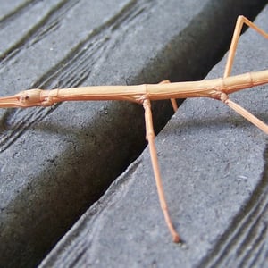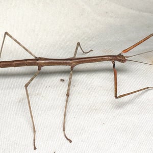 El bastón común es un insecto delgado y alargado que se camufla a sí mismo al asemejarse a una ramita. Los sexos difieren, con el macho generalmente de color marrón y alrededor de 75 mm (3 pulgadas) de longitud, mientras que la hembra es de color marrón verdoso, y bastante más grande a 95 mm (3,7 pulgadas). Hay tres pares de patas, pero en reposo, el par delantero se extiende hacia adelante junto a las antenas, formando una extensión del efecto ramita. Ninguno de los sexos tiene alas, las antenas son dos tercios de la longitud del cuerpo, y cada uno de los cercos (apéndices pareados en la punta del abdomen) tiene un solo segmento.