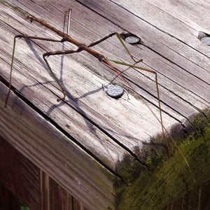 Diapheromera femorata (Diapheromera femorata) es una especie de insecto de la familia phasmididae. La longitud promedio de esta especie es de 75 mm (3 pulgadas) para los machos y 95 mm (3,7 pulgadas) para las hembras. El insecto se encuentra en bosques caducifolios en toda América del Norte, donde come muchos tipos de follaje de plantas. A pesar de que el bastón común es un generalista, tiende a preferir el follaje de los robles y avellanos. A veces se producen grupos localizados de estos insectos; sin embargo, los insectos no tienen alas, y la dispersión de árbol en árbol es limitada.