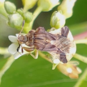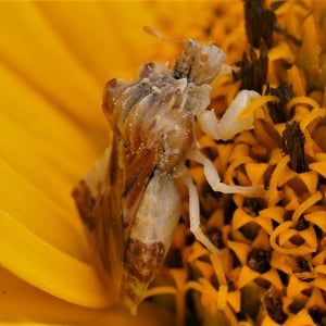 Phymata fasciata, comúnmente conocido como el chinche asesino bandado, es una especie de insecto depredador perteneciente a la familia Reduviidae. Se caracteriza por su cuerpo alargado, que varía en color desde marrón hasta verde, con distintivas bandas amarillas o blancas en sus alas. Estos insectos son depredadores altamente hábiles, utilizando sus fuertes patas delanteras para capturar e inmovilizar a su presa, que principalmente consiste en otros insectos. Phymata fasciata se puede encontrar en diversos hábitats, incluyendo jardines, campos y bosques, donde desempeñan un papel importante en el control de las poblaciones de plagas.