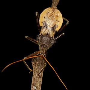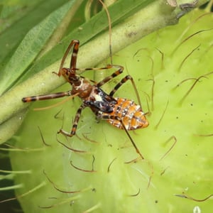 Pristhesancus plagipennis es una especie de insecto comúnmente conocida como "mantis palo". Se caracteriza por su cuerpo alargado y patas delgadas, que se asemejan a un palo o una ramita. Este insecto se encuentra principalmente en regiones tropicales y subtropicales, donde depende de su excelente camuflaje para mezclarse con su entorno. Pristhesancus plagipennis es una especie depredadora, que se alimenta de pequeños insectos y otros artrópodos.