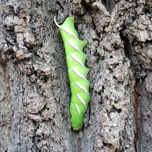 Las orugas se alimentan de ligustros, así como de fresnos, lilas, jazmines y otras plantas.