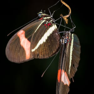 Un estudio reciente, utilizando el conjunto de datos de los Polimorfismos en la longitud de fragmentos amplificados (AFLP) y ADN mitocondrial (ADNmt), sitúa los orígenes de la especie H. Erato en 2,8 millones de años. H. Erato también muestra la agrupación de los AFLPs por la geografía que revela que H. Erato se originó en el oeste de América del Sur.