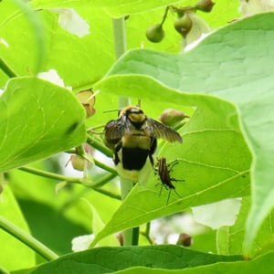 Bombus fraternus, comúnmente conocido como abejorro de las llanuras del sur, es una especie de abejorro que se encuentra en América del Norte. Se caracteriza por su gran tamaño, con reinas que alcanzan hasta 20 mm de longitud. Las obreras y los machos tienen un tórax y abdomen amarillos, con bandas negras, mientras que las reinas tienen una coloración más variable. Son polinizadores importantes, especialmente para las plantas nativas en pastizales y praderas.