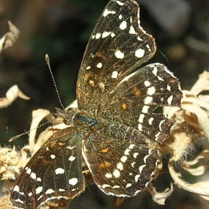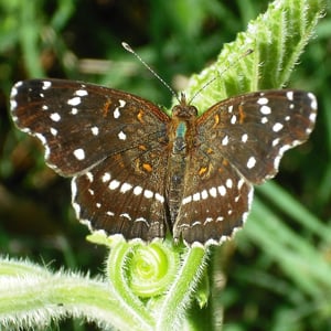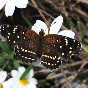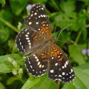 Anthanassa texana, la mancha media luna de Texas, es una especie de mariposa de la familia Nymphalidae. Se encuentra desde Guatemala al norte a través de México hasta el sur de California, al este a través del sur de los Estados Unidos hasta el norte de Florida, Georgia y Carolina del Sur. Se pueden encontrar callejeros hasta Arkansas, Missouri, Illinois, Dakota del Sur y el centro de Nevada. El hábitat consiste en desiertos, quebradas secas, áreas abiertas, riberas de arroyos, bordes de carreteras y parques de la ciudad. La envergadura es de 32-48 mm. El margen exterior está indentado debajo de la punta del ala delantera. La parte superior es negra con pequeñas manchas blancas y algo de rojo oxidado cerca de las bases de las alas. Las alas traseras tienen una banda mediana de manchas de color crema. Los adultos están alados de marzo a noviembre en el sur de Florida y Arizona. Están en alas durante todo el año en el sur de Texas y los trópicos. Hay varias generaciones por año. Los adultos se alimentan de néctar de flores. Las larvas se alimentan de las hojas de varias plantas de bajo crecimiento de la familia Acanthaceae, que incluyen especies de Diciliptera brachiata, Jacobinia carnea, Beloperone, Siphonoglossa y Ruellia.