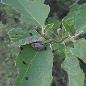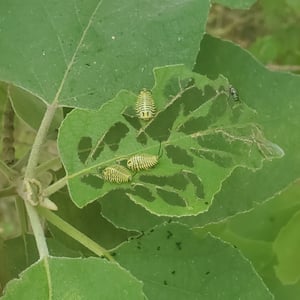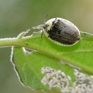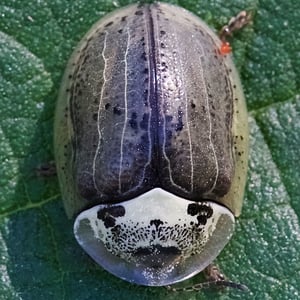 Physonota alutacea es una especie de insecto comúnmente conocido como chinche escudo bronceado. Pertenece a la familia Pentatomidae y se encuentra en varias regiones de América del Norte. Este insecto se caracteriza por su coloración metálica bronceada y su cuerpo en forma de escudo, alcanzando una longitud de aproximadamente 10-15 mm. Se alimenta de una variedad de plantas y a veces puede considerarse una plaga en entornos agrícolas.