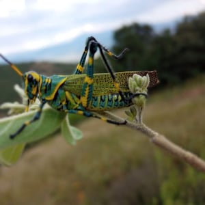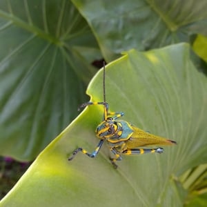 Chromacris colorata est une espèce de sauterelle communément appelée la sauterelle arc-en-ciel. Elle se caractérise par sa coloration vibrante et irisée, allant des nuances de vert, de bleu et de violet. Cet insecte se trouve dans les régions tropicales d'Amérique centrale et du Sud, où il habite les zones herbeuses et se nourrit de différentes espèces végétales. La sauterelle arc-en-ciel est connue pour son impressionnante capacité de saut et est souvent considérée comme une espèce visuellement frappante dans le monde des insectes.
