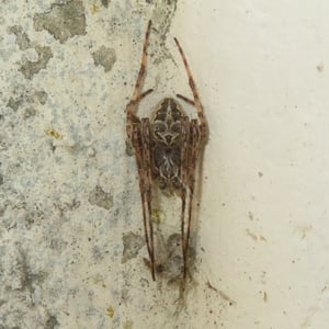 La femelle se distingue à son gros abdomen, qui fait le double de son céphalothorax, et à ses taches brun foncé sur fond brun clair. L'abdomen du mâle est presque de même taille que son céphalothorax. Ses taches brunes contrastent vivement avec le fond brun grisâtre.