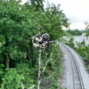 Sa toile est orbiculaire et peut atteindre environ 70 cm de diamètre. Certaines toiles peuvent être irrégulières, aux rayons fort espacés. À l'une des extrémités, l'araignée recourbera une grande feuille pour s'y abriter le jour, la tête pointant vers l'extérieur.