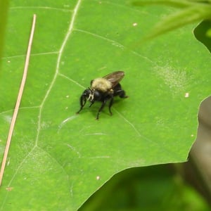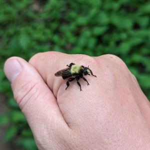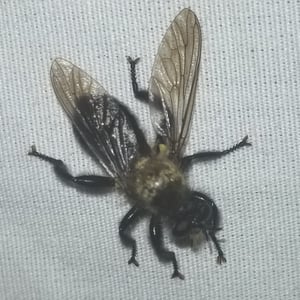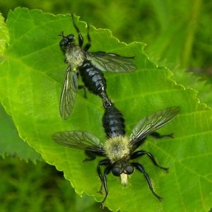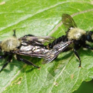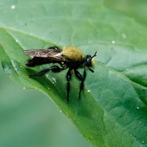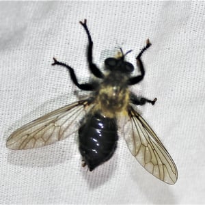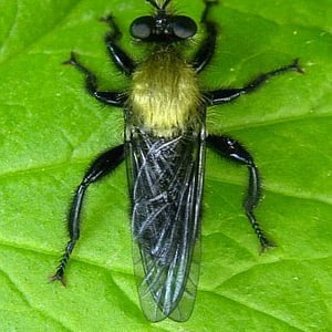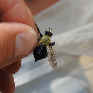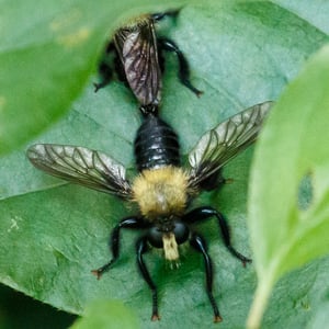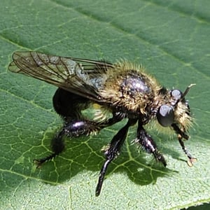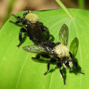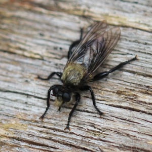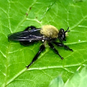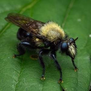 Laphria flavicollis, communément appelée mouche abeille à cou jaune, est une espèce d'insecte appartenant à la famille des Bombyliidae. Elle se caractérise par son corps robuste, son apparence velue et son cou de couleur jaune distinctif. Cette espèce se trouve dans divers habitats en Amérique du Nord, où elle est connue pour être une pollinisatrice bénéfique. Les adultes de Laphria flavicollis se nourrissent de nectar et de pollen, tandis que les larves sont parasitaires, se nourrissant des larves d'autres insectes.