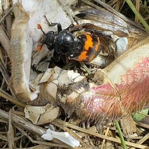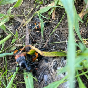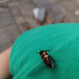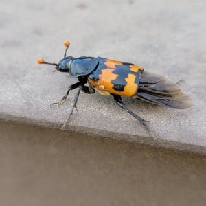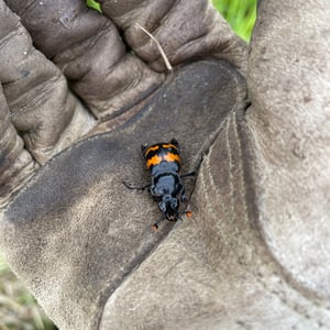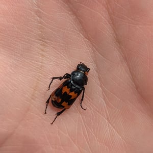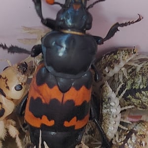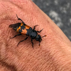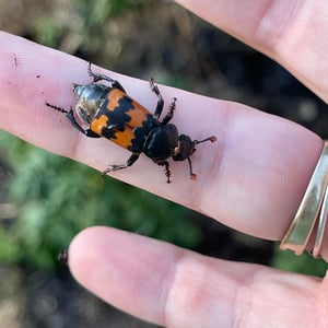 Nicrophorus marginatus, communément appelé le scarabée ensevelisseur marginé, est une espèce de scarabée nécrophage que l'on trouve en Amérique du Nord. Il se caractérise par son corps noir avec des marges orange distinctes sur les élytres (ailes antérieures). Ces scarabées jouent un rôle écologique important en ensevelissant de petits cadavres de vertébrés, tels que des oiseaux ou des rongeurs, pour se reproduire et comme source de nourriture pour leurs larves. Ils sont connus pour leur odorat développé, qui les aide à localiser les charognes à une distance considérable.