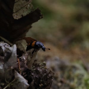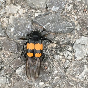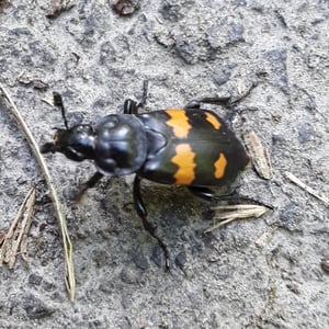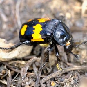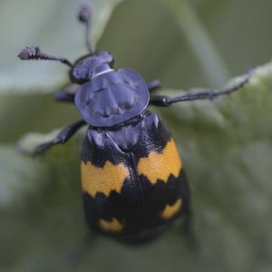 Nicrophorus defodiens, communément appelé le scarabée ensevelisseur, est une espèce de scarabée nécrophage que l'on trouve dans différentes parties de l'Amérique du Nord. Ces insectes sont connus pour leur comportement unique consistant à enterrer de petits cadavres de vertébrés, tels que des oiseaux ou des rongeurs, comme source de nourriture pour leurs larves. Ils ont un corps noir distinct avec des marques orange et sont équipés de mandibules puissantes pour creuser et manipuler les carcasses. Les scarabées ensevelisseurs jouent un rôle important dans le recyclage des nutriments et sont considérés comme bénéfiques pour leurs services écologiques.