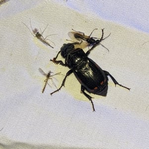 Nicrophorus pustulatus, communément appelé le scarabée ensevelisseur pustulé, est une espèce de scarabée nécrophage que l'on trouve en Amérique du Nord. Il se caractérise par son corps noir avec des marques orange et des pustules distinctives sur ses élytres. Ces scarabées jouent un rôle écologique important en tant que décomposeurs, se nourrissant de matière animale en décomposition et en enterrant les carcasses pour se reproduire. Ils sont connus pour leur remarquable soin parental, les deux parents travaillant ensemble pour préparer et défendre la carcasse pour leur progéniture.