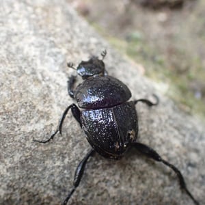 Sisyphus schaefferi est une espèce de scarabée coprophage que l'on trouve dans les forêts tropicales d'Amérique du Sud. Il est connu pour son comportement distinctif de rouler des boules de fumier en montée, similaire à la figure mythologique de Sisyphe. Ce scarabée joue un rôle crucial dans le recyclage des nutriments en enterrant les excréments, ce qui aide à fertiliser le sol et favorise la croissance des plantes. Sisyphus schaefferi a un exosquelette noir brillant et peut atteindre une longueur d'environ 2 centimètres.