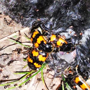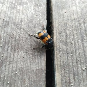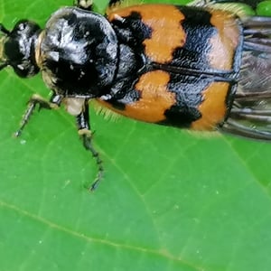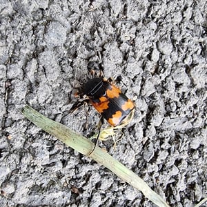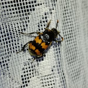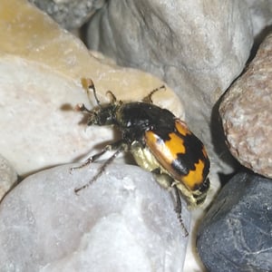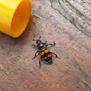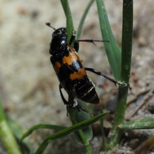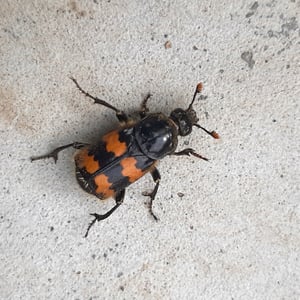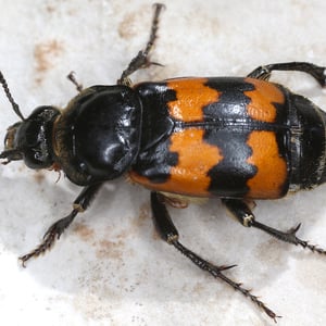 Nicrophorus vespillo, communément appelé le scarabée ensevelisseur, est une espèce d'insecte appartenant à la famille des Silphidae. Ces scarabées sont connus pour leur comportement unique consistant à enterrer de petits cadavres de vertébrés comme source de nourriture pour leurs larves. Ils ont un corps noir ou brun foncé avec des marques orange ou rouges, et leurs antennes sont en forme de massue à l'extrémité. Les scarabées ensevelisseurs jouent un rôle important dans la décomposition et le recyclage des nutriments dans les écosystèmes.