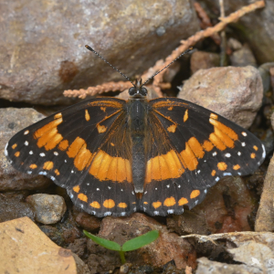 Chlosyne californica, the California patch, is a butterfly of the family Nymphalidae found in the Southwestern United States and Mexico. It lives in desert washes and canyons in regions between southern Nevada south to southwestern Arizona, southeastern California, Baja California and Sonora. The wingspan is 1+1/4 –. The upper side of the wings is brownish-black at the base and costal edge, with a wide yellow-orange median band and large orange submarginal spots. The underside is similar, with a red spot on the hindwing near the abdomen blending into the median band. Adults feed on flower nectar. The larvae feed on Parish goldeneye (Bahiopsis parishii) and occasionally on sunflowers (Helianthus annuus).
