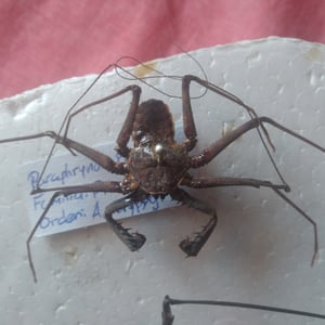 Acanthophrynus is a species of insect belonging to the order Phasmatodea, commonly known as stick insects or walking sticks. It is characterized by its long and slender body, resembling a twig or branch, which helps it camouflage in its natural habitat. Acanthophrynus is primarily found in tropical regions, where it feeds on leaves and vegetation. It is known for its remarkable ability to mimic its surroundings, making it difficult for predators to spot.