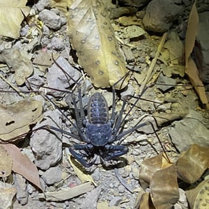 Acanthophrynus coronatus is a species of insect commonly known as the crowned stick insect. It is characterized by its elongated body, reaching up to 10 centimeters in length, and its distinct crown-like structure on its head. This insect is found in tropical rainforests, primarily in Central and South America. Acanthophrynus coronatus is a herbivorous insect, feeding on leaves and vegetation.