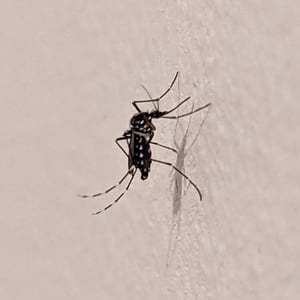 Aedes mosquitoes are visually distinctive because they have noticeable black and white markings on their bodies and legs. Unlike most other mosquitoes, they are active and bite only during the daytime. The peak biting periods are early in the morning and in the evening before dusk.