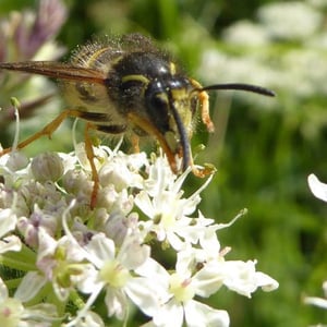 Dolichovespula is a genus of social wasps commonly known as yellowjackets. They are medium-sized insects with yellow and black markings on their bodies. They build large paper nests, usually underground or in trees, and are known for their aggressive behavior when their nests are disturbed. Dolichovespula species are found in various parts of the world and are considered important predators of other insects.
