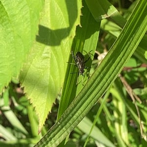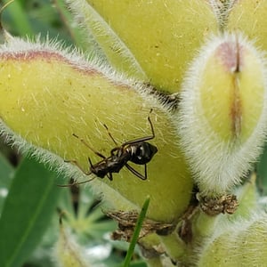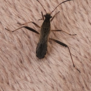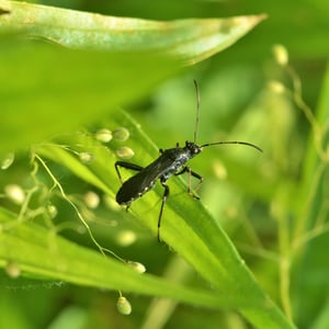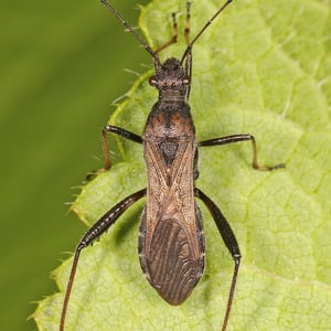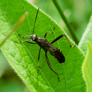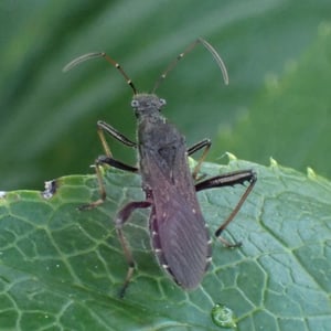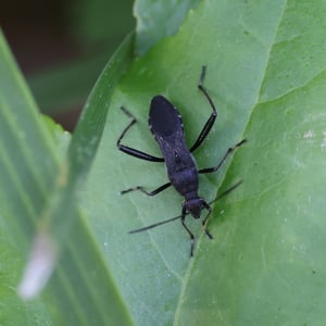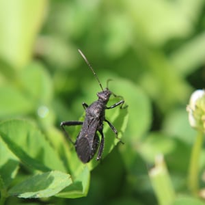 Alydus eurinus is a species of insect commonly known as the "cotton stainer bug." It belongs to the family Alydidae and is found in various regions of North America. These insects are approximately 10-12 mm in length and have a distinct black and red coloration. They are known to feed on the seeds of cotton plants, causing damage to the crop.